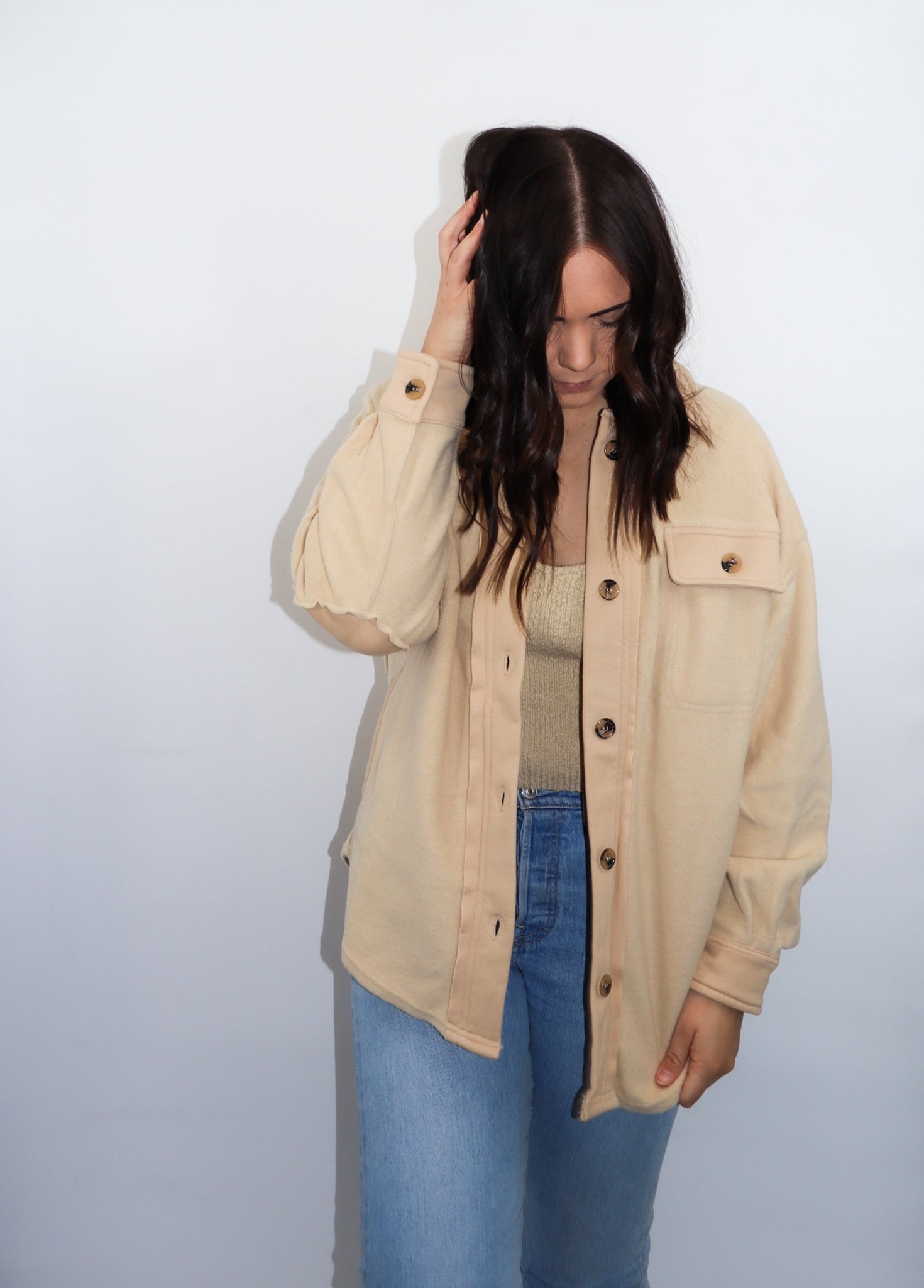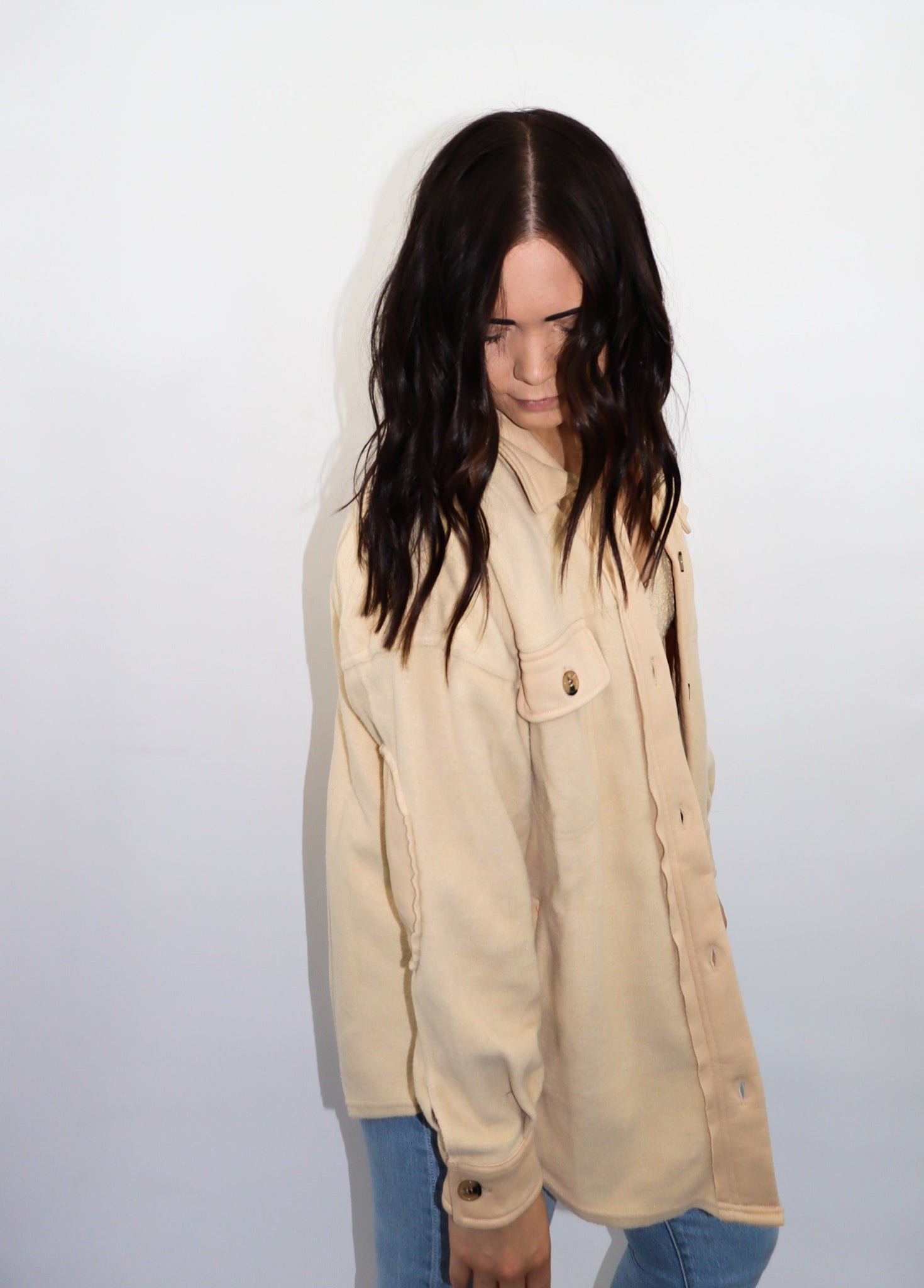 • oversized, heavyweight french terry knit jacket with functional front pockets + elbow patch details