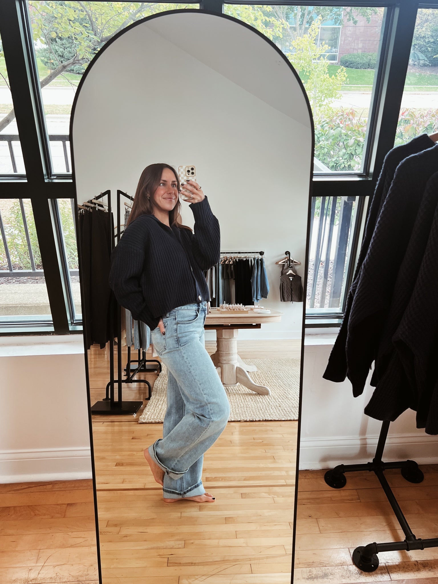 mid-rise, vintage wash, stretch dad jean with 33” inseam + 9.5” rise
