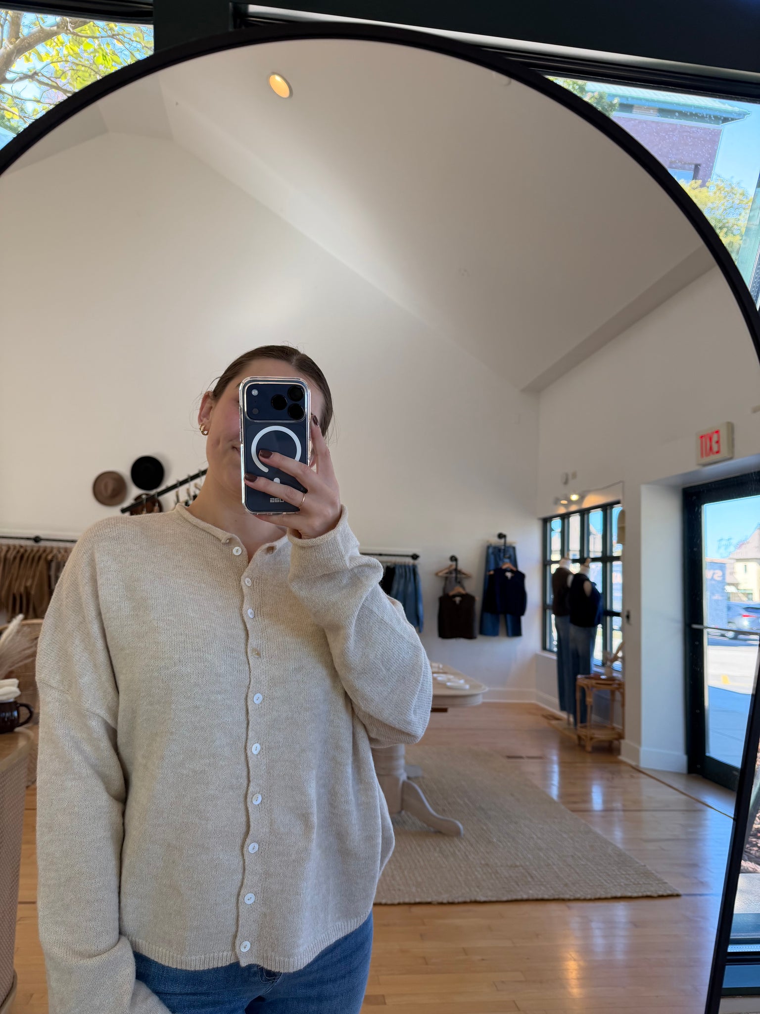 oh so soft, lightweight button-down cardigan with rolled neckline + cuff detailing and oversized silhouette