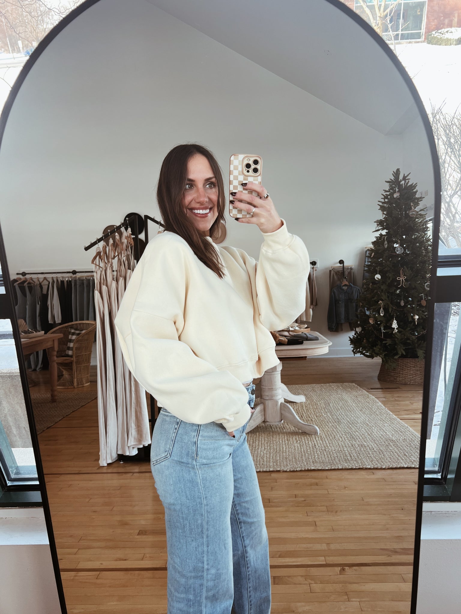 audrey is a true size small wearing a size medium for an oversized fit