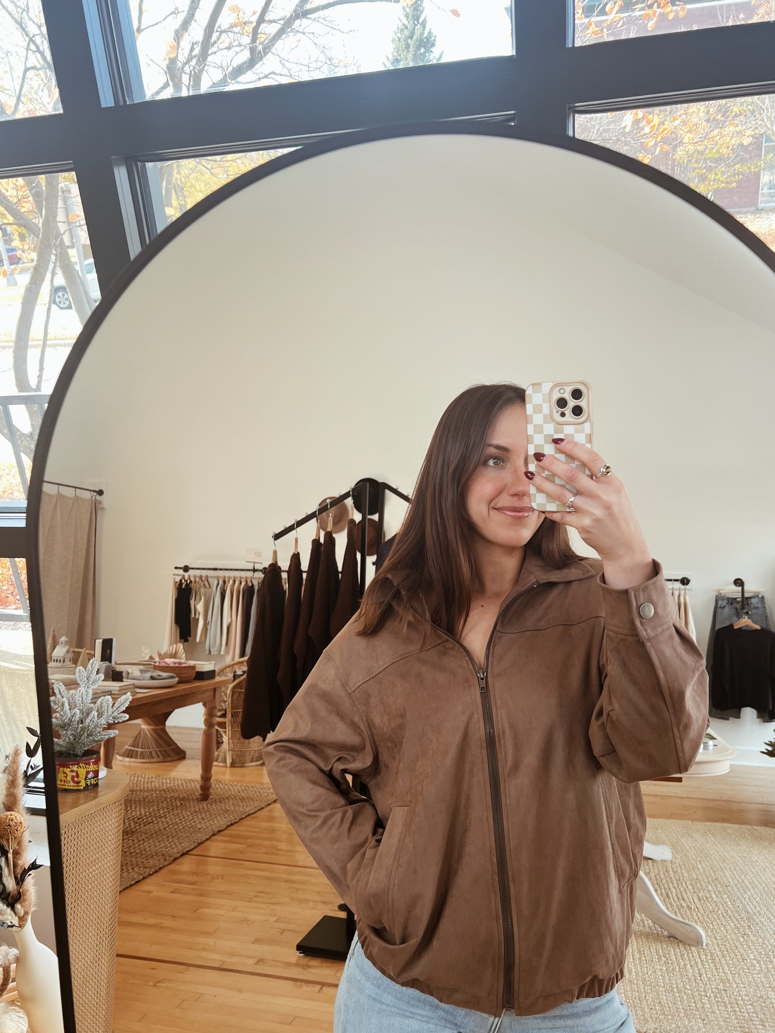 camel suede collared oversized bomber jacket
